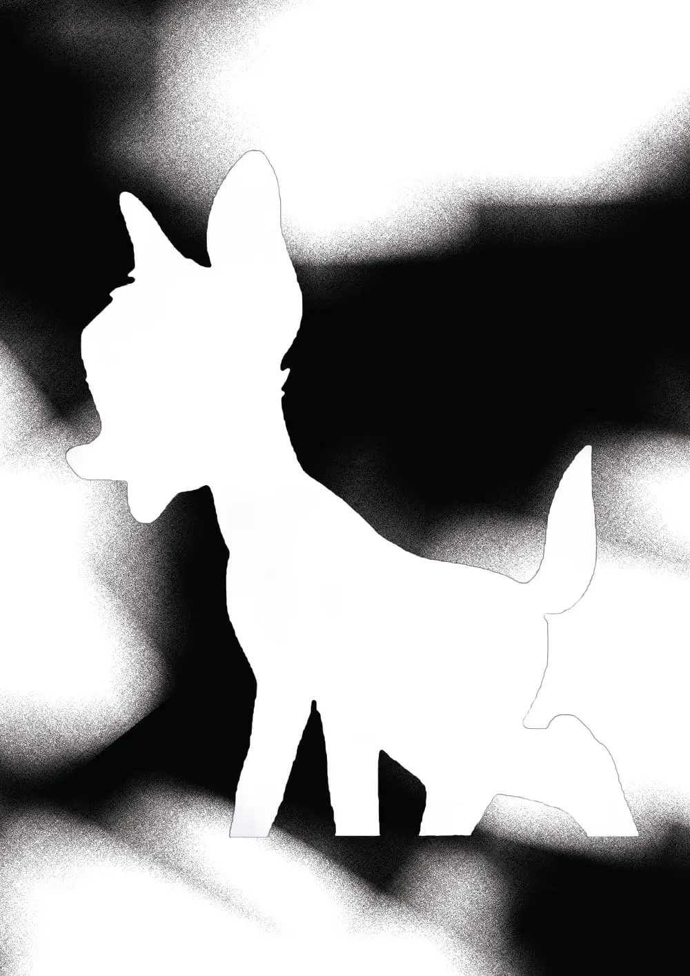 L’utilisation de cette technique crée une atmosphère onirique et mystérieuse, où la silhouette délicate de l'animal se fond dans un arrière-plan abstrait.